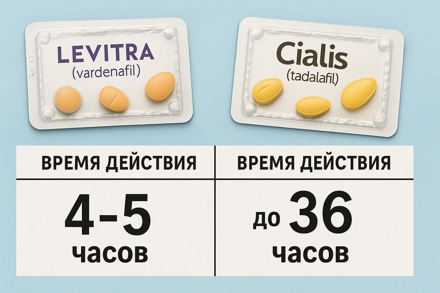 Левитра содержит варденафил, а Сиалис — тадалафил. Основное различие между ними заключается во времени действия. Левитра обычно начинает действовать через 25-60 минут после приема и сохраняет свое воздействие в течение примерно 4-5 часов. Сиалис обладает более длительным действием, начиная работать уже через 15-30 минут и сохраняя свою эффективность до 36 часов. Это делает Сиалис более удобным для планирования сексуальной активности.
